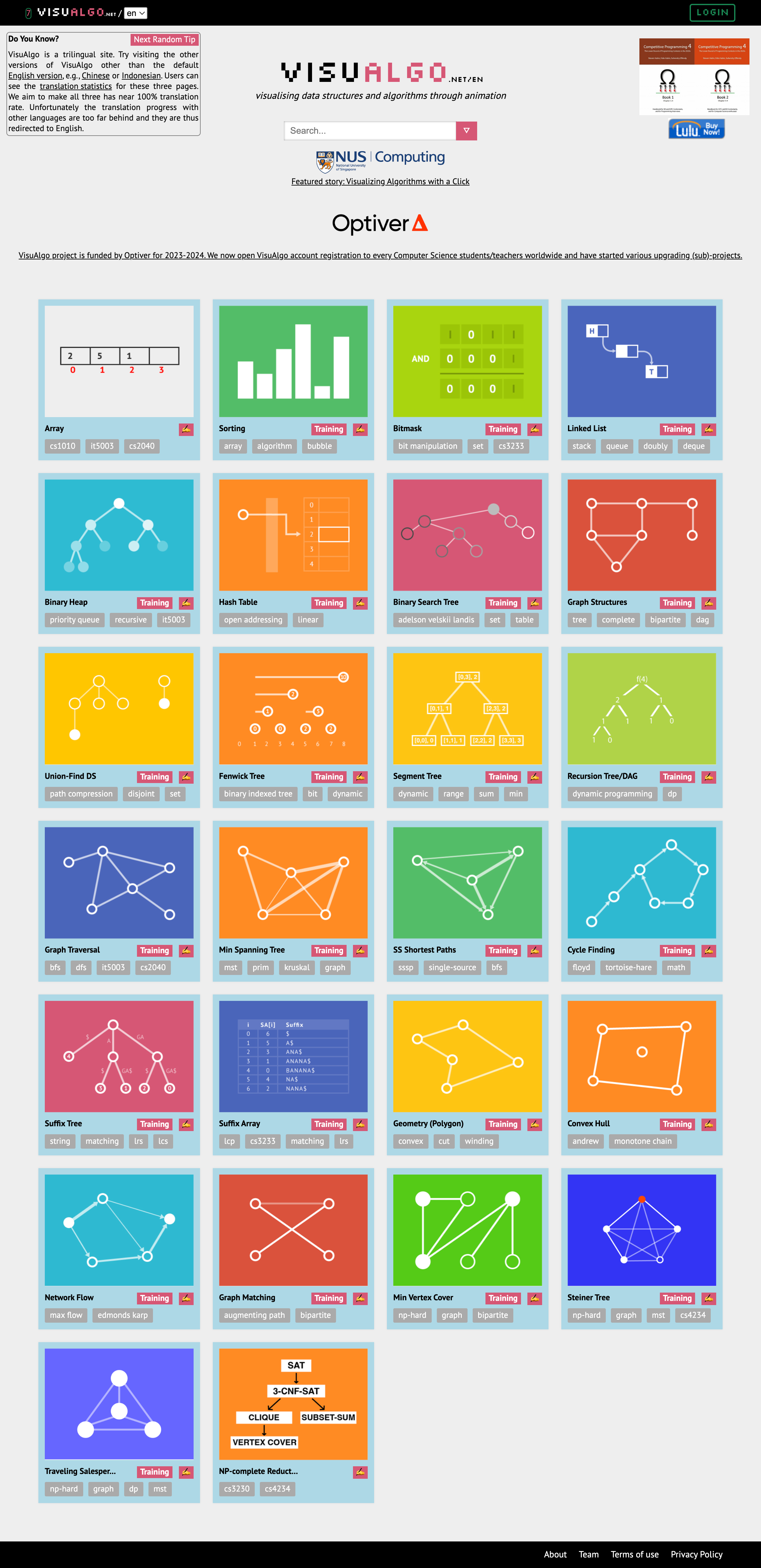 VisuAlgo is generously offered at no cost to the global Computer Science community. If you appreciate VisuAlgo, we kindly request that you spread the word about its existence to fellow Computer Science students and instructors. You can share VisuAlgo throu